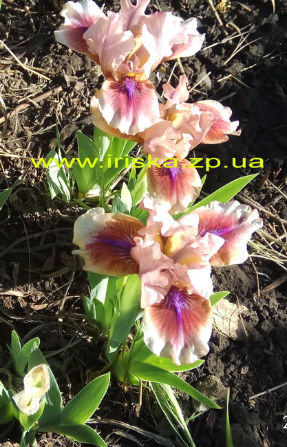 Спокуса-бежево розовые стандарты, коричнево красные фолы с широкой бежево розовой каймой и ярко аметистовыми бородками