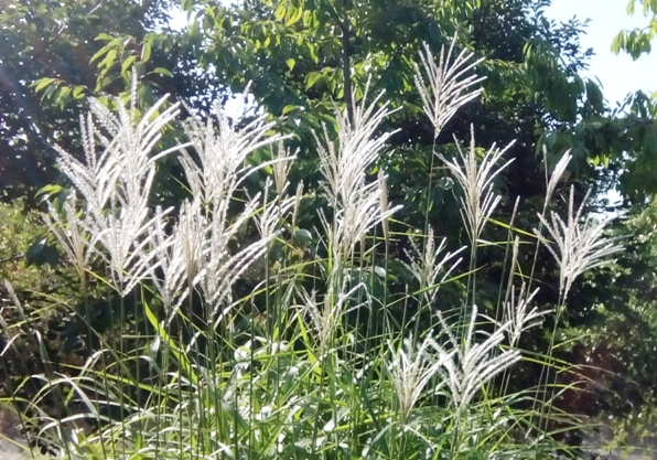 Мискантус образует пышные высокие кусты, побеги высотой около 2 м украшены зелеными листьями с белыми продольными полосками.В июле-сентябре верхушки стеблей венчают веерообразные метелки длиной до 30 см серебристого цвета.Декоративность сохраняется всю зиму,а весной старую листву обрезают и куст быстро восстанавливается.