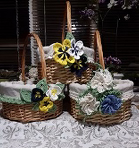 корзинка из лозы ,декор -ручная работа,цветы связаны крючком из хлопковой нити,чехол из льна,с такой корзинкой можно и в церковь на Пасху или Спас,или в гости с подарком.